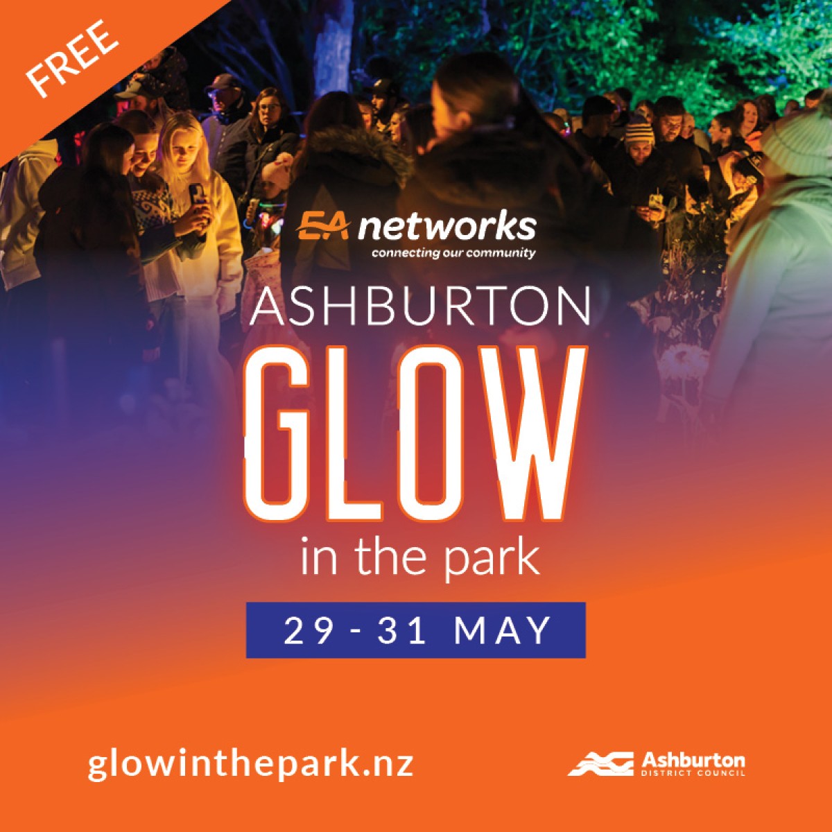 Glow in the Park is a free, family-friendly community event held over three evenings, transforming the Ashburton Domain into an immersive light and sound experience. The event features illuminated installations, interactive entertainment, food vendors and activities suitable for all ages.