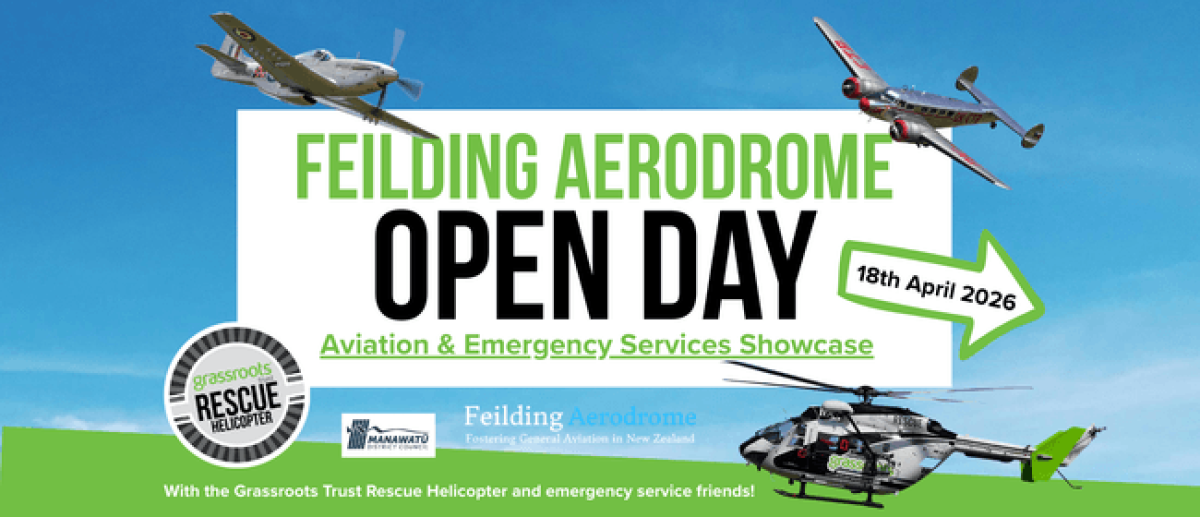 Feilding Aerodrome Open Day: Aviation & Emergency Services Showcase, featuring the Grassroots Trust Rescue Helicopter and emergency service friends!