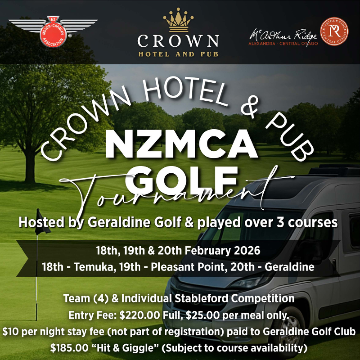 Geraldine Golf is delighted to announce they are hosting another competition and you're invited! So, calling all Golf Lovers because the NZMCA South Island Golf Open is returning on 18 - 20 February 2026!