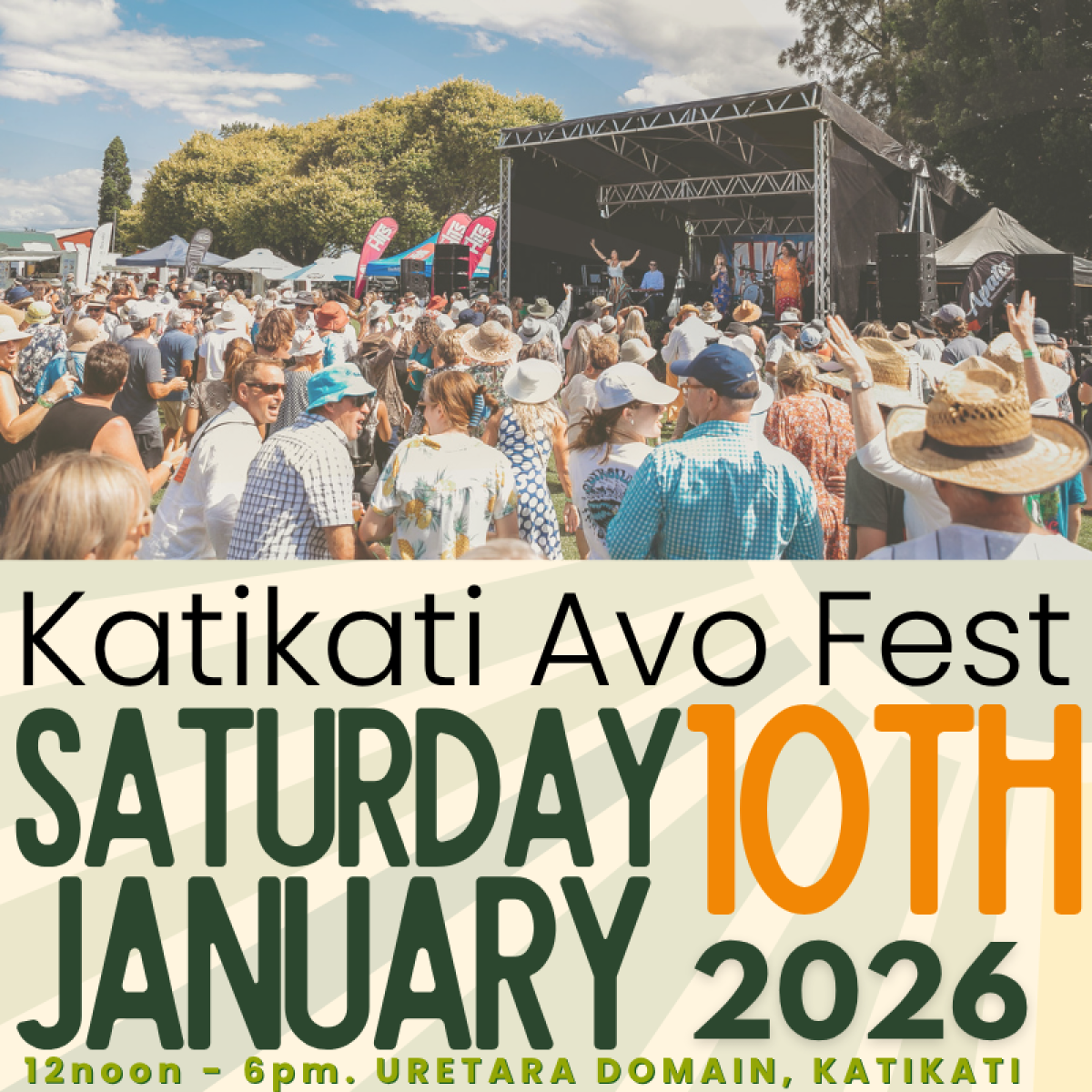 The highlight of the local summer event calendar, the Katikati Avo Fest, is happening Saturday 10th January 2026 at the Uretara Domain, Katikati from noon til 6pm.