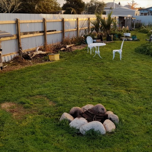 Directions: On the south side of Westport. Easy to find.Additional Information: Fully fenced, private section 500 sq m. 14m hardstand. Campfire and dry firewood provided. Safe, secure and private. Town water supply on site. Tents welcome. Regenerating food forest. Miyawaki pocket forest. Hugelkultur garden. Bee friendly. The fee collected contributes towards affordable housing for a vulnerable family, as well as funding the development of this food forest.Restrictions: Noon check-in and noon check-out. Max 1 motorhome or caravan Must be NZTA compliant Have current WOF and rego Fully self-contained only