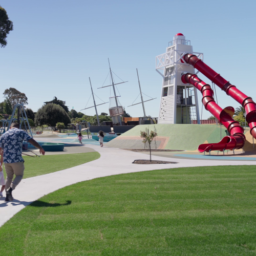 Experience the award-winning CPlay Playground at Caroline Bay, where adventure awaits! Climb aboard a shipwreck, conquer a towering lighthouse slide, explore the mahika kai-inspired play zone, navigate a thrilling floor-is-lava obstacle course, and soar through the air on a 50-meter tandem flying fox—all beneath the watchful eyes of the taniwha. This play area welcomes individuals of all ages, abilities, and sizes, promoting inclusivity in its design