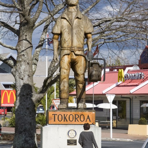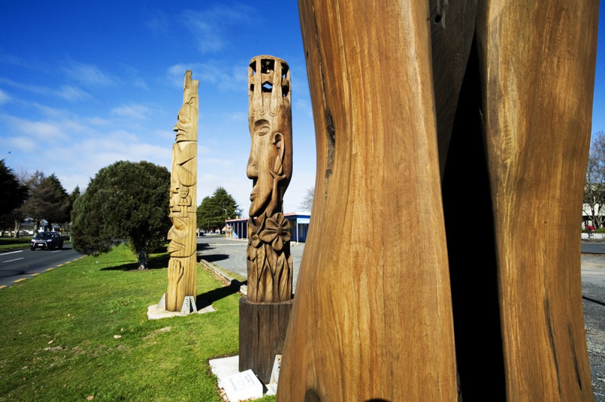 The Talking Poles are unique to Tokoroa, over 40 tall carved/constructed structures celebrating the history and culture of the area can be found on a trail leading around the CBD area. The most famous Talking Poles are the greenman and the chainsaw man that stand outside the information centre on State Highway 1.