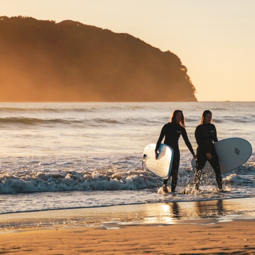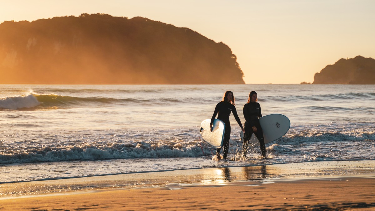 Whangamatā’s sweeping ocean beach is famous for delivering the best of both worlds; consistent surf breaks for board riders and some of the safest swimming in Aotearoa New Zealand.