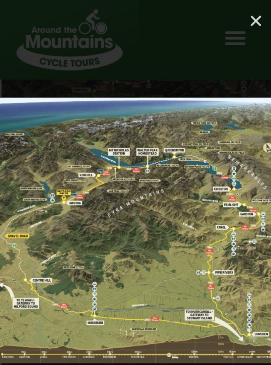 Completing the whole trail will take 4–5 days by reasonably fit cyclists, taking advantage of local hospitality in the Southland towns of Mossburn, Lumsden, Garston, Athol and Kingston. Cycle tour companies and shuttles can handle all the logistics and help arrange day rides.