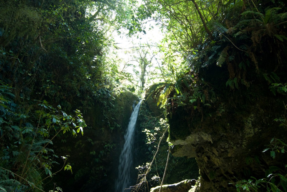 After a steeper section the track forks left down to Rata Stream. Follow the stream down for 100 m then exit right back onto the track. This track crosses another small stream before descending steeply to Emily Stream at the base of the falls.