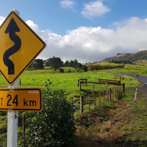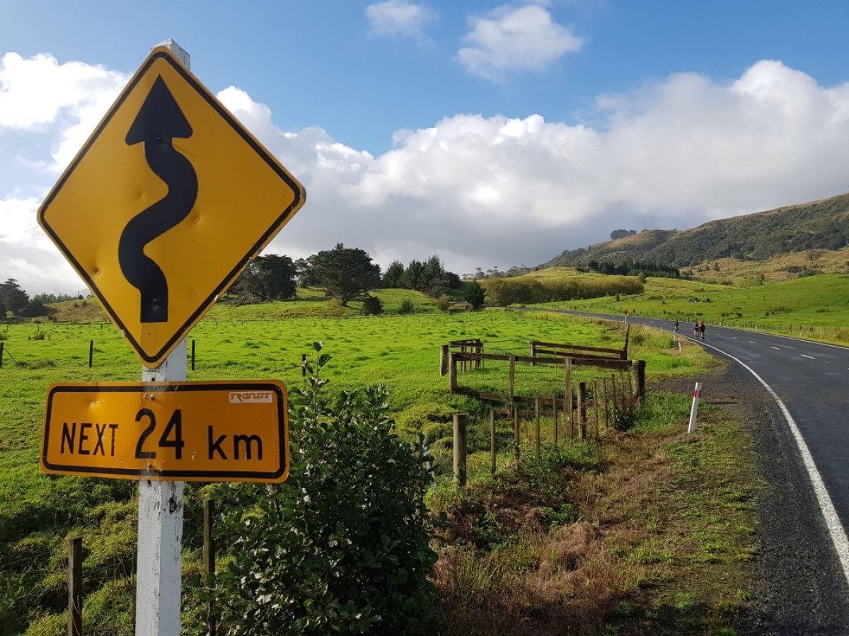 From Tane Mahuta, the road is mostly downhill for 10km.
