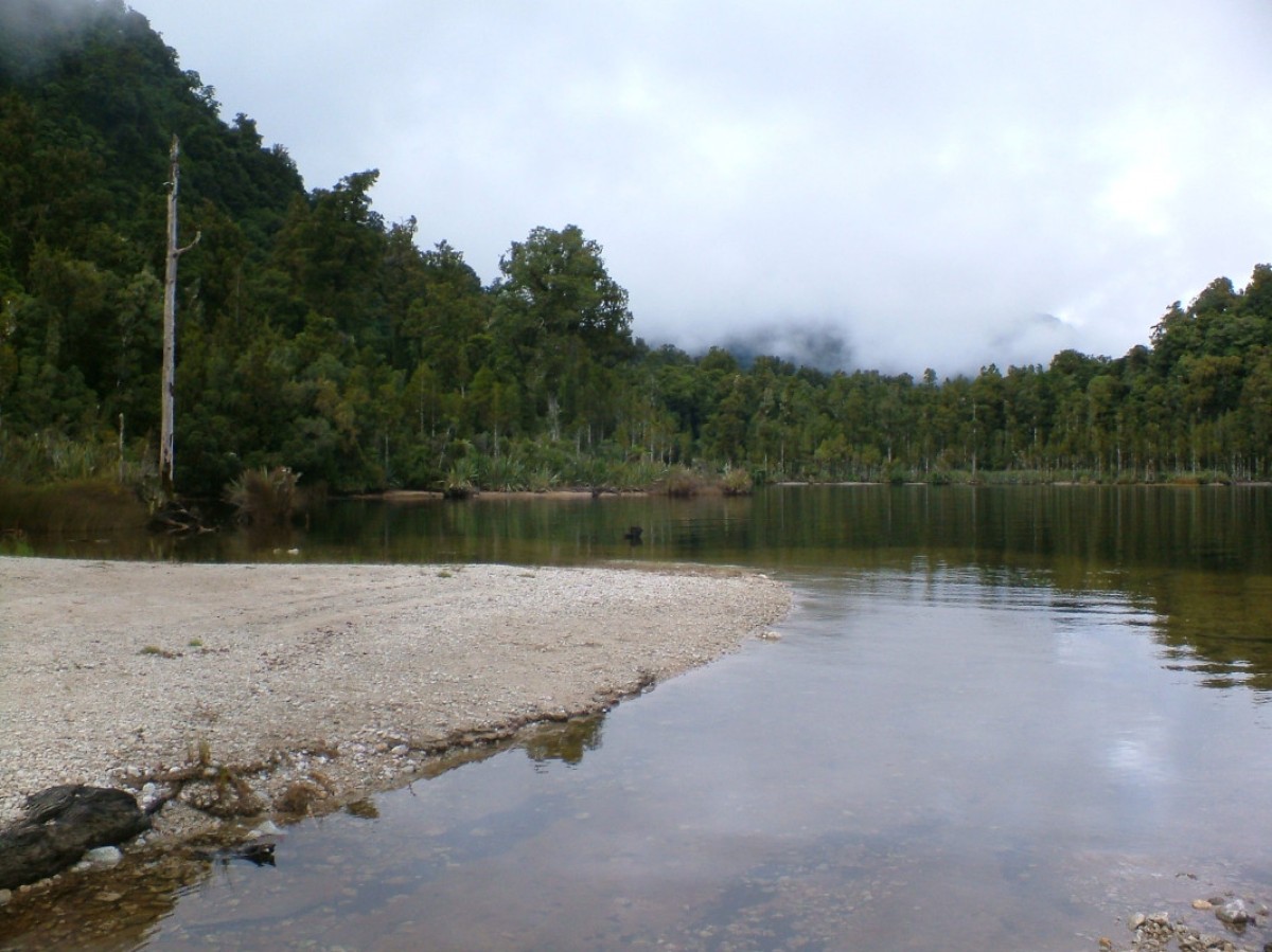 From Hokitika head east 19 km along Lake Kaniere Road, this road meets the lake at 'The Landing'. The road forks at this point, the right road heads to 'Sunny Bight' and the other is Dorothy Falls Road which takes you around the east side of the lake past Hans Bay.