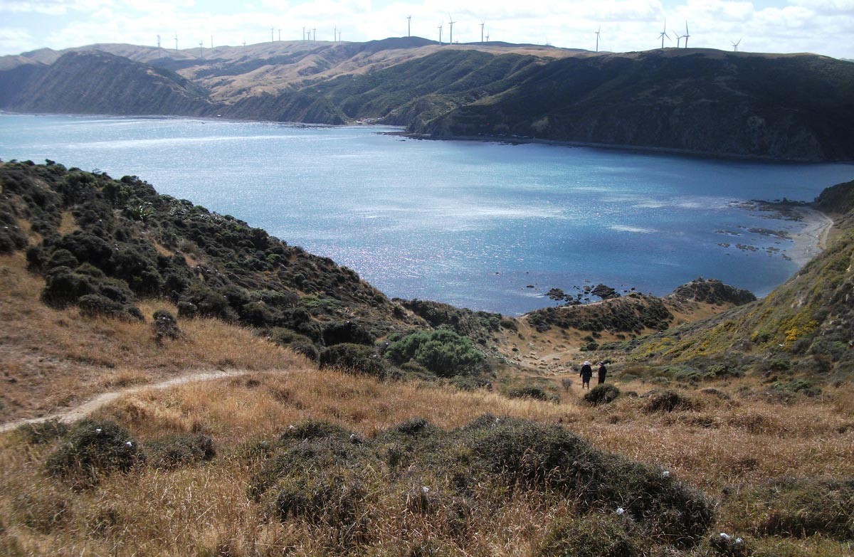 Mākara Beach is sheltered from southerly winds, but is very exposed to northerlies. The hilltops are especially prone to gale force winds.