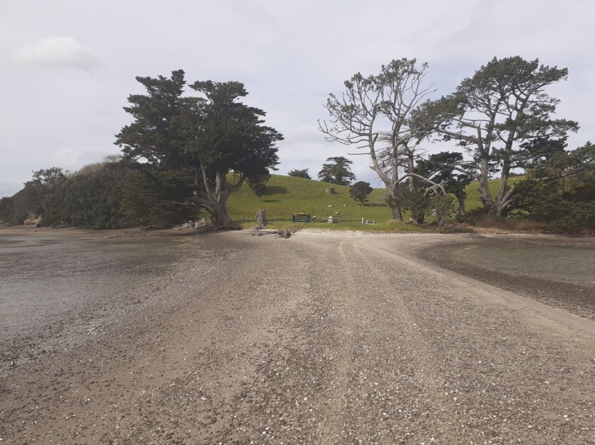 The sandspit out to the island is walkable at low tide only. Crossing is possible up to 3 hours either side of high tide.