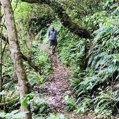 Easy tramping with stream crossings. This track starts from the Pioneer Park campground and climbs through regenerating native bush and then through introduced forestry trees. The return leg drops steeply into a native bush gully and zigzags (seven times) across the stream before meeting the original track. A left turn takes you back to the campground.