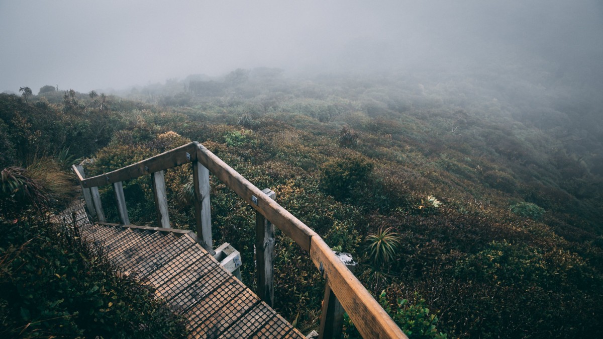 Follow the Nikau Walk to the campsite. The Tahuanui Track leaves the campsite beside the stream and climbs steadily up a ridge to join the Tirohanga Track before the summit.