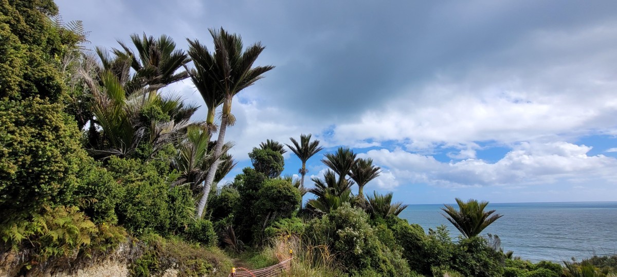 From its northern (Rapahoe) end the track climbs to an open terrace with slowly regenerating in native growth after years of farming. Beyond there, in Rapahoe Scenic Reserve, one of the finest remaining tracts of mixed coastal forest in New Zealand extends from the limestone range out to the cliff edge.