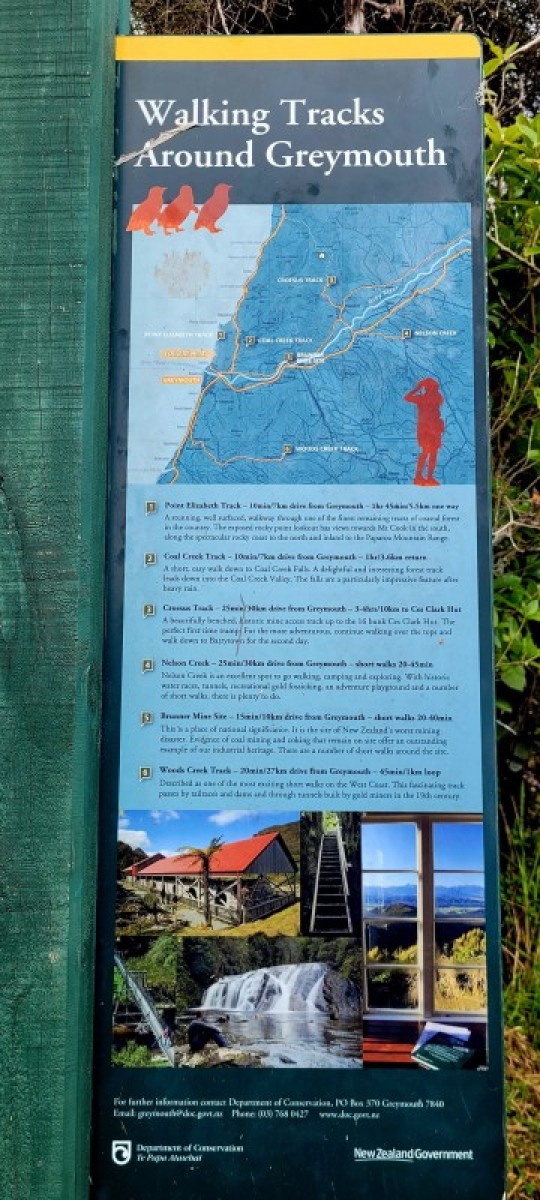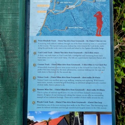 Point Elizabeth can be easily accessed from Greymouth. To reach the northern end drive to Rapahoe on SH6 from Greymouth (about 11km). For the southern end drive via Cobden onto Bright Street, Domett Esplanade and North Beach Road (about 6 km). There are car parks at both ends.
