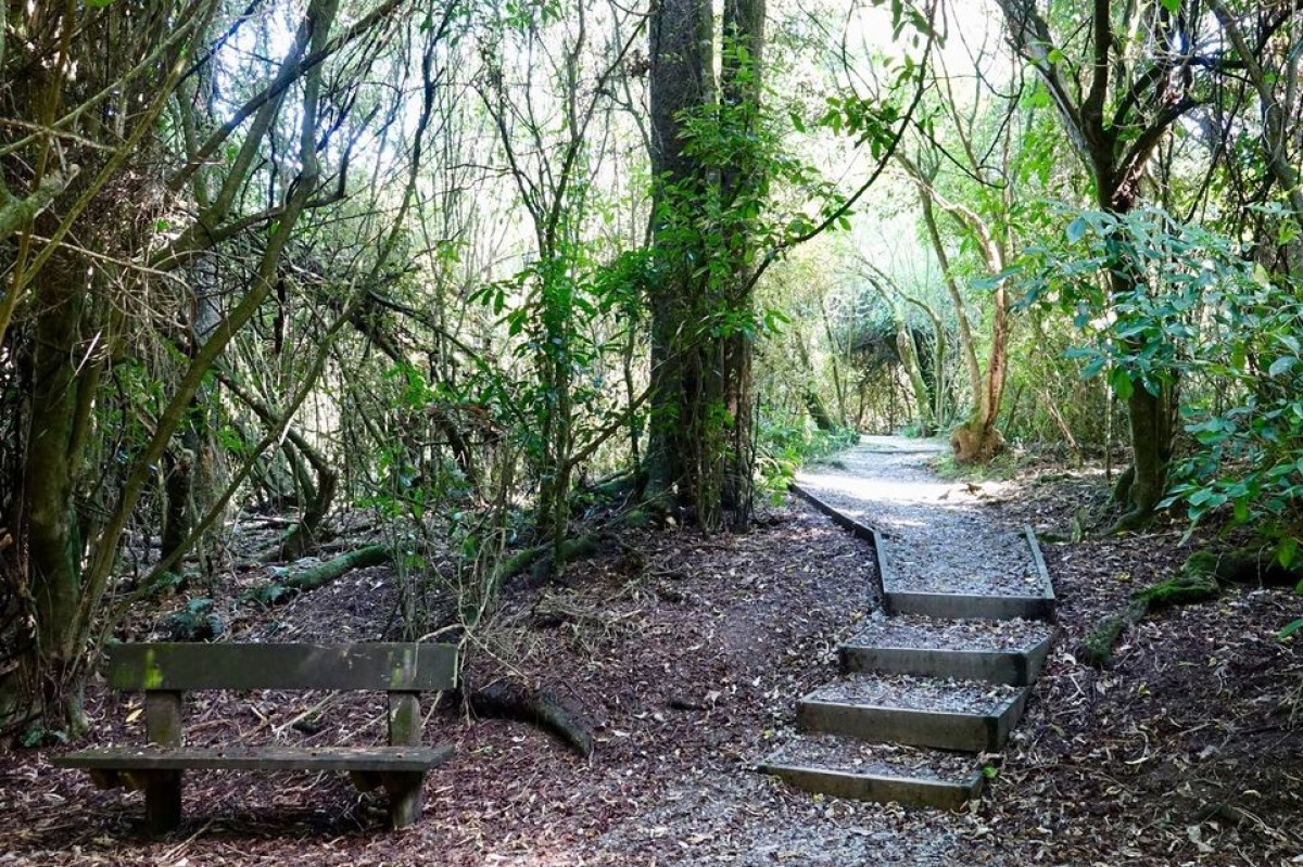 This track connects Totara Street with Tripp Street picnicarea. Next to the track is the largest tōtara in the reservewhich is estimated to be 800 years old. Tōtara were usedby Māori to built canoes. A large tree could be made into a waka taua (war canoe) capable of holding 100 warriors.