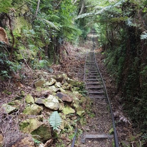 The following junction gives access to a number of other tracks. The High Level Track branches to the left and continues upwards, passing several mine portals and waterfalls. It levels out just before the old mining camp known as Quartzville, then descends to the historic Low Level Track, just above the May Queen Incline. Return the same way or return via the Low Level Track heading south. Overnight walks are accessible by continuing north to the Waiorongomai Saddle.