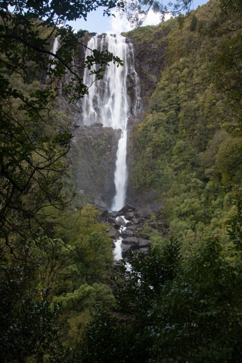 The falls drop 153 m over the steep escarpment, which is part of the Okauia fault line. In spring, watch out for the apricot-coloured flowers of the taurepo plant on the rocky valley walls.