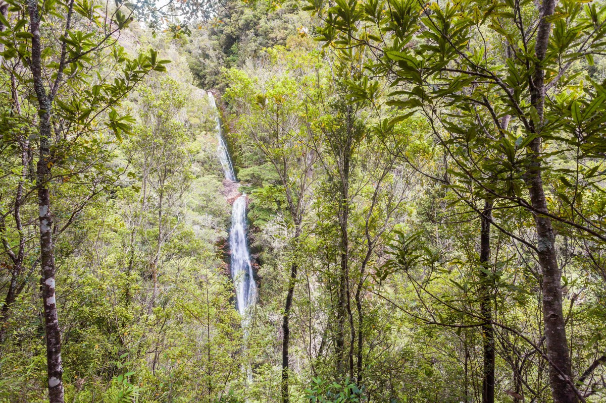 This track, from the Wentworth campsite to Wentworth Falls, follows an easy grade alongside the Wentworth River, with two bridged crossings, before climbing to a good view of the falls. The falls are in two drops of about 20 metres each. From here, a steeper tramping track leads to a basin at the top of the falls.