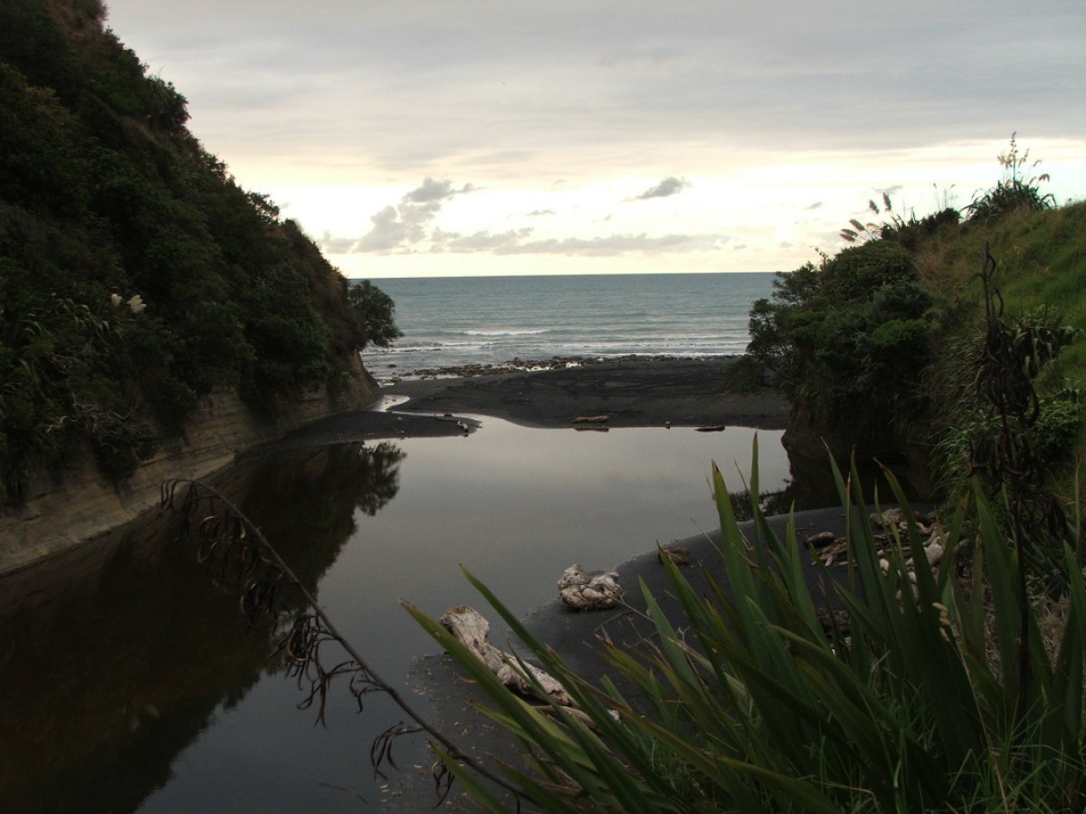 You can only walk along the beach at low tide (between Wai Pingao Stream mouth and Pukearuhe). Do not attempt unless you can reach Pukearuhe while the tide is still on its way out. Check the tide timetable before you go (external site).