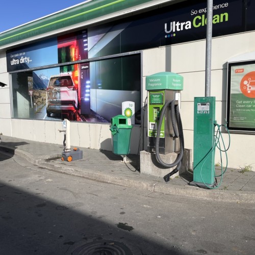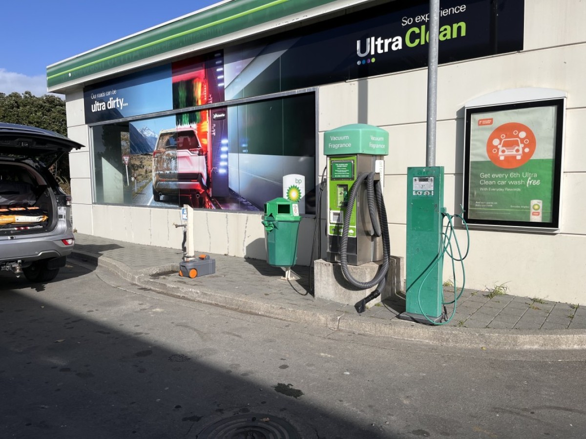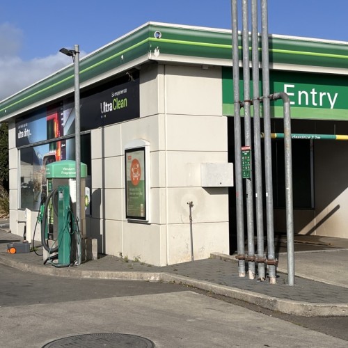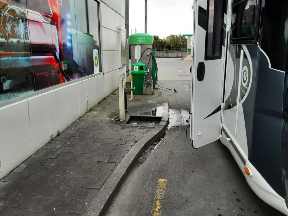 From BP Service Station Oxford St South. Located approx. 1km south of Post Office. Dump station beside the carwash. Additional information: Flushing tap at site. Fresh water fire hose (potable) at west end of carpark. No charge.