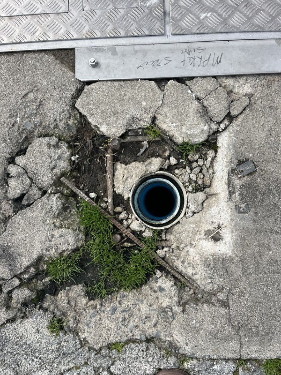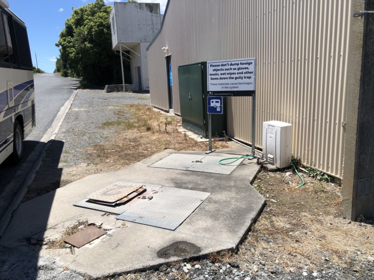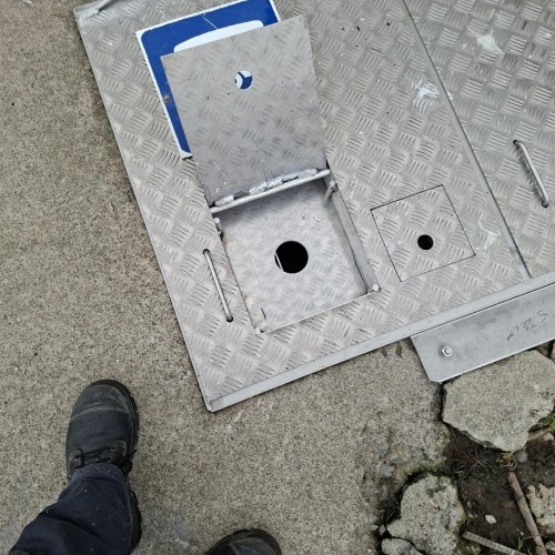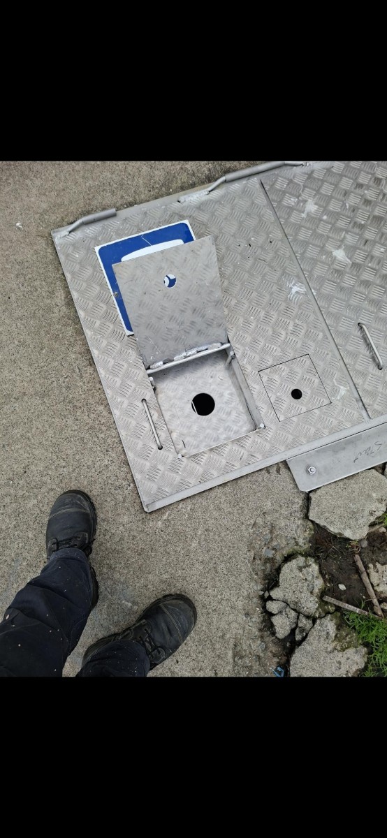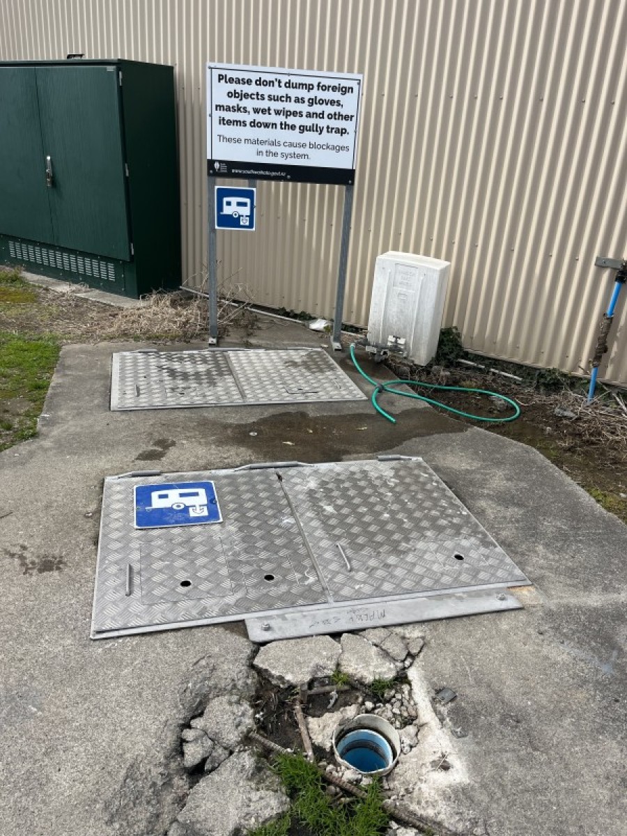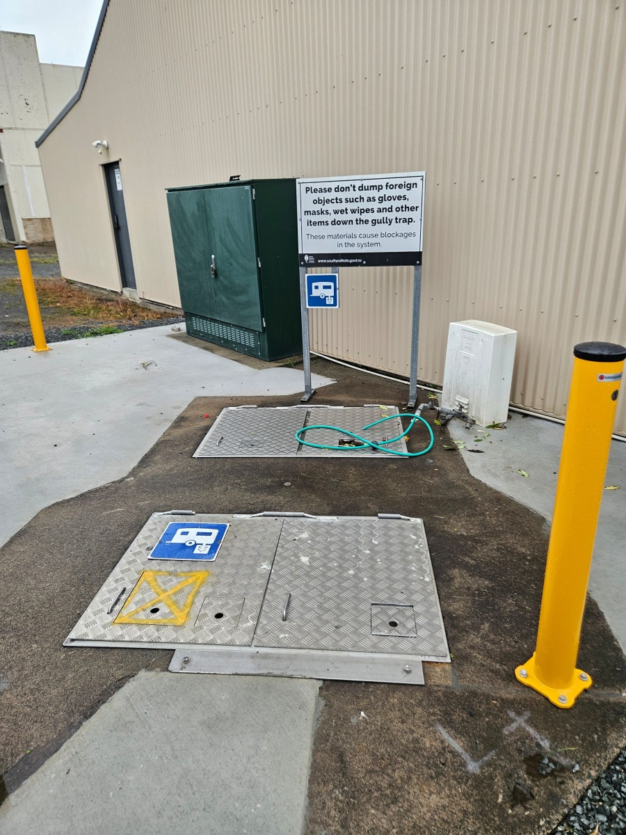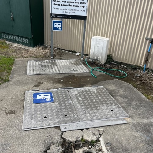 Additional Information: There are 2 lids on this dump station.The locked lid is the access for pump station maintenance, and is not to be accessed by the public, however right next to it is the dump station as pictured which has a yellow x painted on it, left to access.