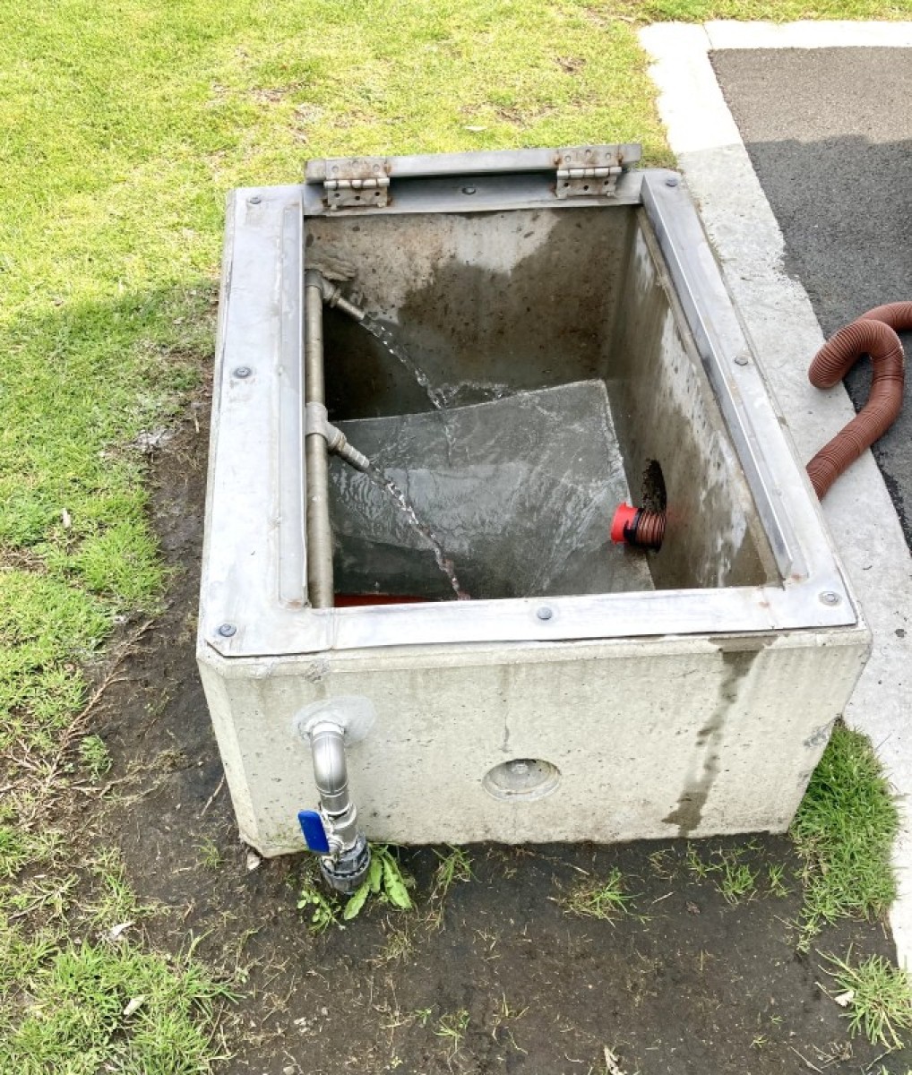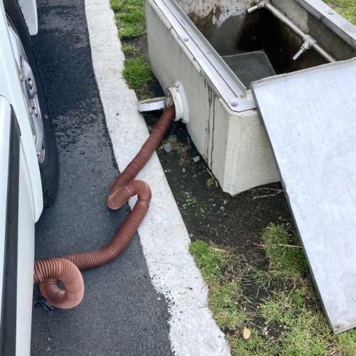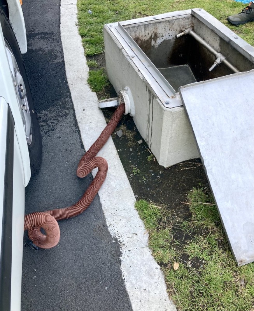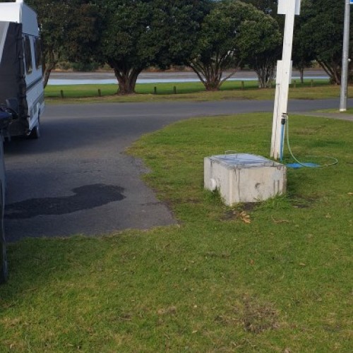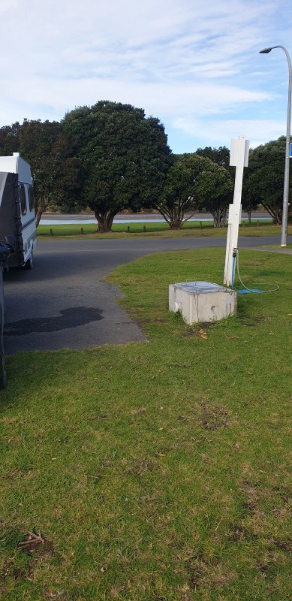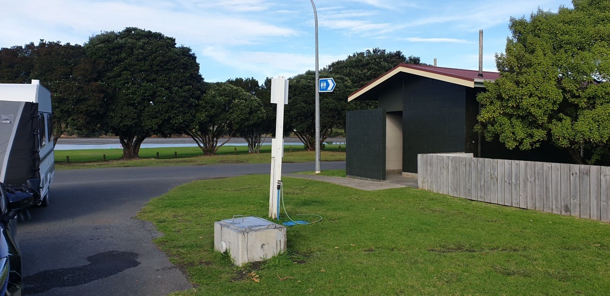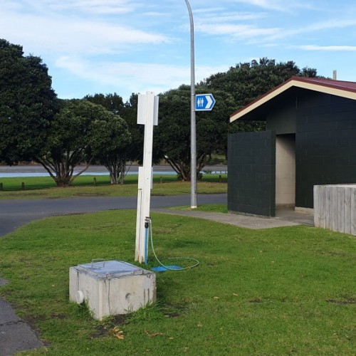 Directions: From Bow St, Raglan: Turn onto Wainui Rd and proceed across bridge. Turn right onto Marine Pde. Follow signs to Holiday Park, continue past Park entrance; the dump station is on left beside the public toilet block.