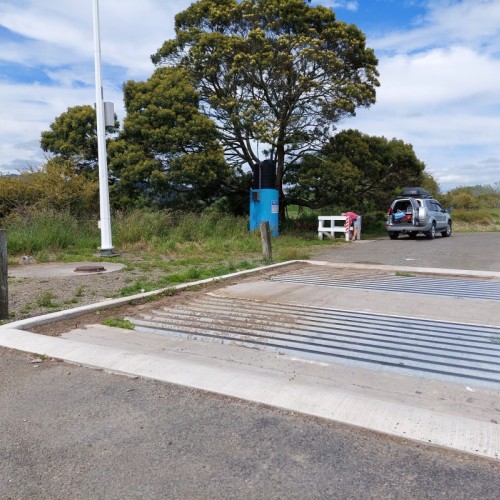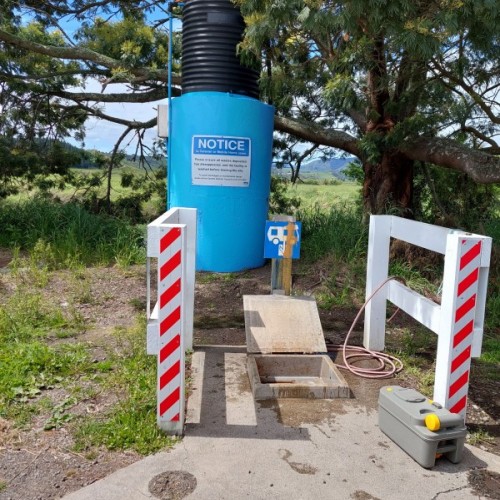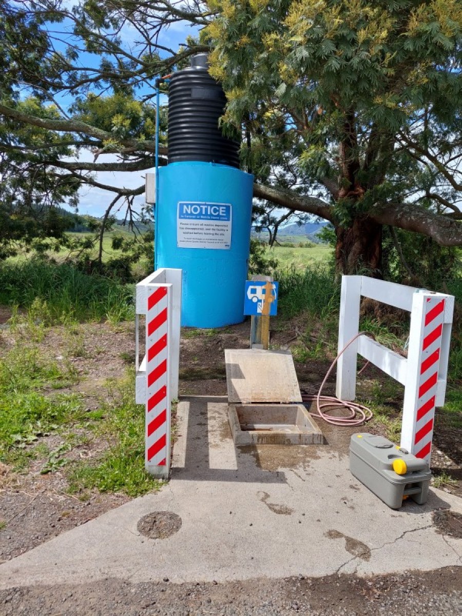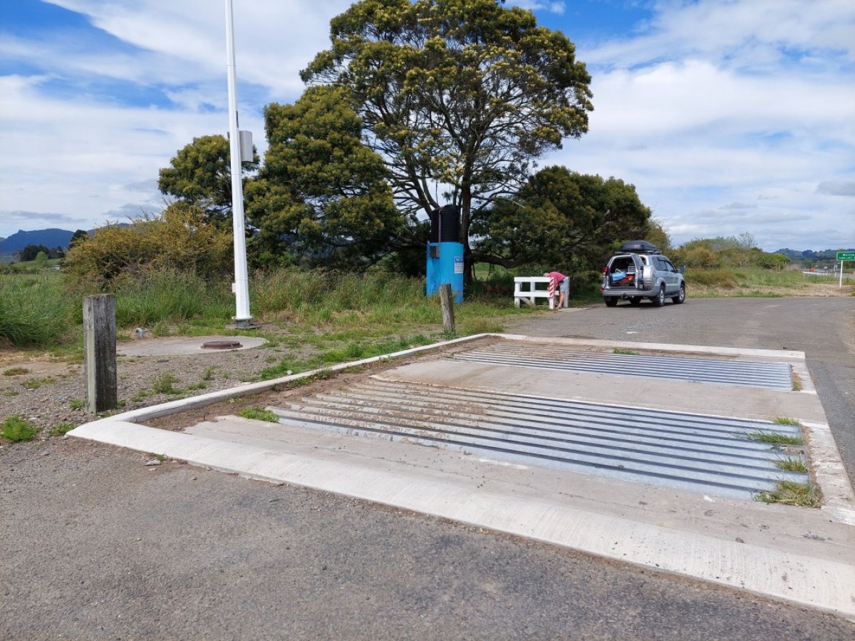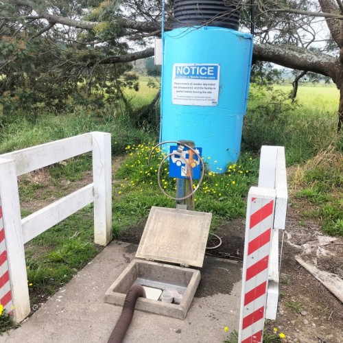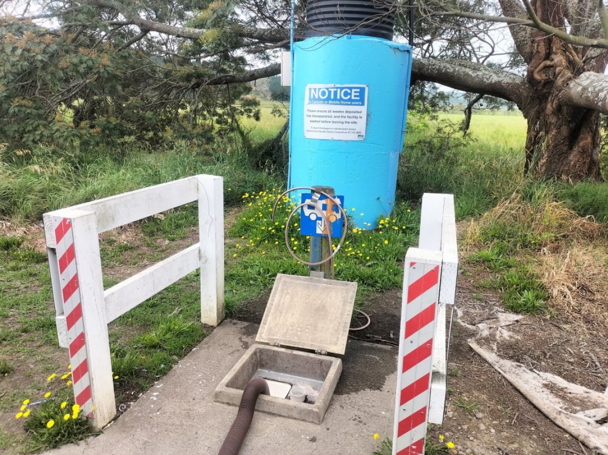 From SH2: Located beside stock effluent site on eastern side of SH2 (Waiotahi Beach Rd), approx. 5kms north of Kutarere. MUST rinse down dump station after use.