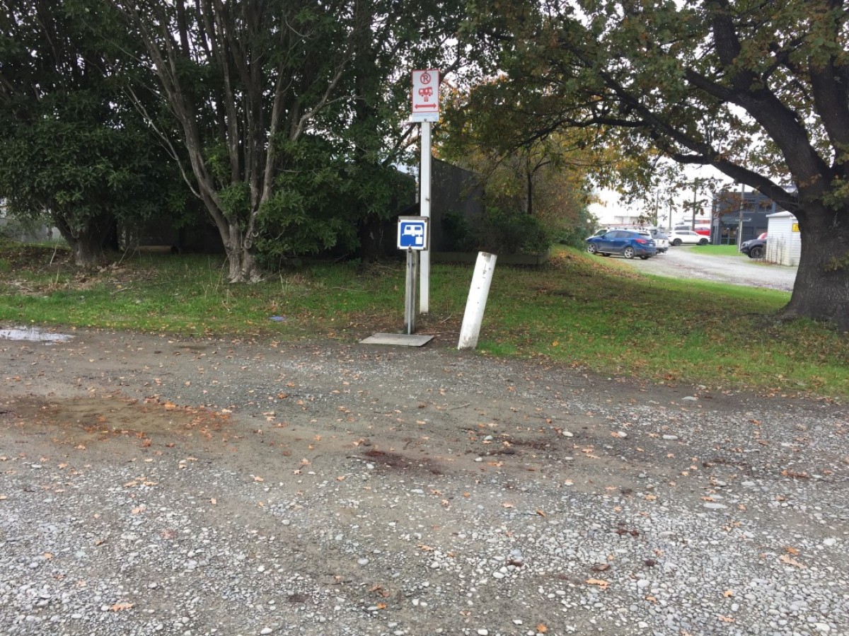 From SH6: Located behind Mobil Service Station; carpark opposite Brandon St. Additional Information: Rubbish bins near band rotunda on north side of dump station.